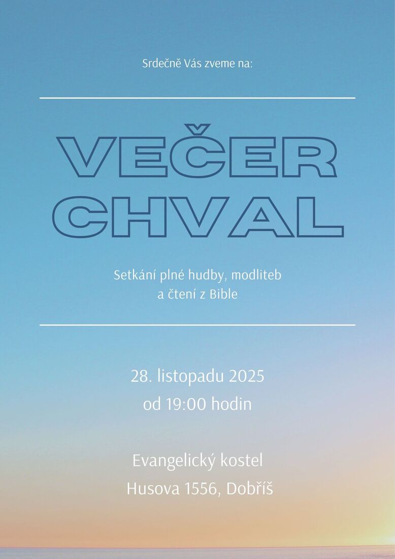 Srdečně zveme na listopadový předadventní večer písní a chval - v pátek 28. listopadu 2025 od 19.00 hodin. Program připravuje naše mládež.